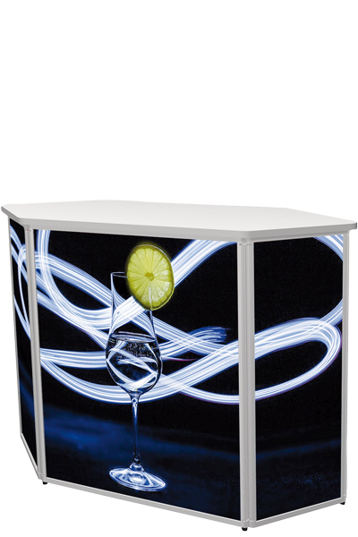 Expo Counter, 5-seitiger Messetheke mit weißer Tischplatte