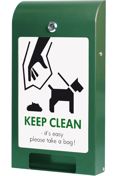 Hundekotbeutelspender in gekurvtem Design für Wandmontage, Spender-Turm oder Multi Stand. Aus galvanisiertem und pulverlakiertem Stahl hergestellt, verschließbar, mit 2 starken 3 mm Acryl Frontscheiben, für das Einfügen von Botschaften in A4-Format. Kann bis zu 300 Beutel fassen. -> Beutel (Art. 11310).