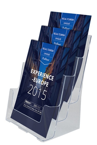 Prospekthalter 3 x DIN A4 für Tisch und Wand aus Acryl