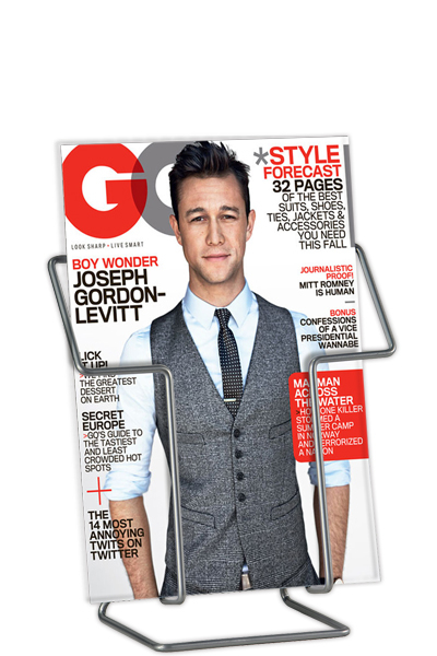 Der Tisch-Prospektständer aus Draht bringt deine A4-Unterlagen auf Augenhöhe. Die stabile Drahtkonstruktion mit silberner Pulverbeschichtung bietet eine elegante Lösung für Broschürenpräsentationen auf begrenztem Raum.
