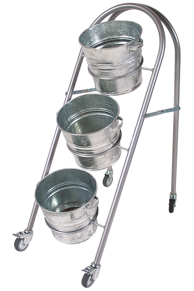Aus 25 mm phospatierte und polyester-lackierten Stahlrohr in grau RAL 9006. Kannüberall im Geschäft plaziert werden. Wirdgebrauchsfertig mit 3 Zinkeimer und 4 Rädergeliefert. Wird ohne Werkzeug gesammelt. Die Zinkeimer haben einen Ø von 24 cm und eine Höhe von 22cm. Optional auch mit einem Kunststoffeimer erhältlich. Ø 24 cm, Höhe 21 cm