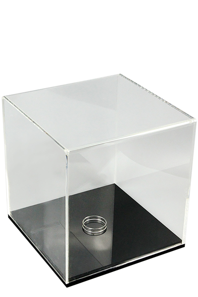 Viereckige Box aus klarem Acryl (und schwarz) für eine elegante Präsentation von Produkten.