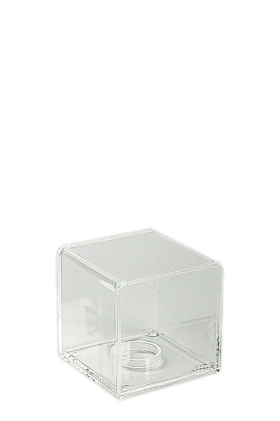 Viereckige Box aus klarem Acryl (und schwarz) für eine elegante Präsentation von Produkten.