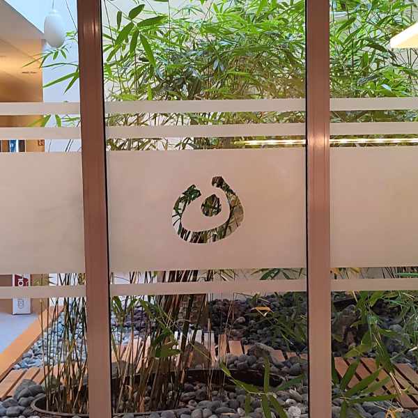 Unsere Milchglasfolien sind für alle Büros ideal, da sie Privatsphäre bieten und das natürliche Licht nicht blockieren. Durch Bearbeiten der Folie sind Motive oder Streifenoptik in jeglichen Formen möglich.